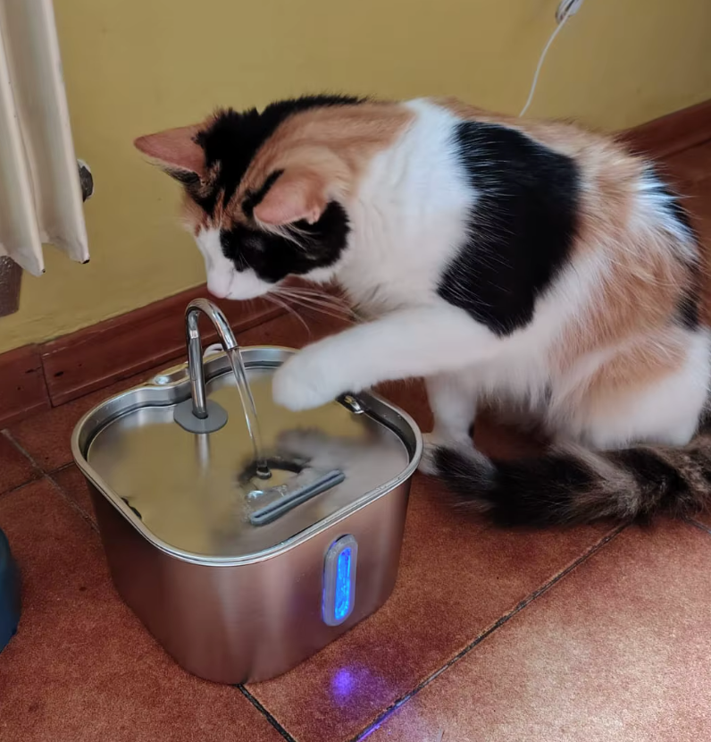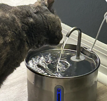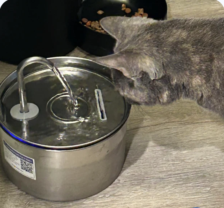 "Ma chatte Mila était toujours difficile avec l'eau. Depuis que j'ai cette fontaine, elle y va plusieurs fois par jour. L'acier inoxydable se nettoie vraiment bien, c'est un plus énorme par rapport à mon ancienne fontaine en plastique qui jaunissait."